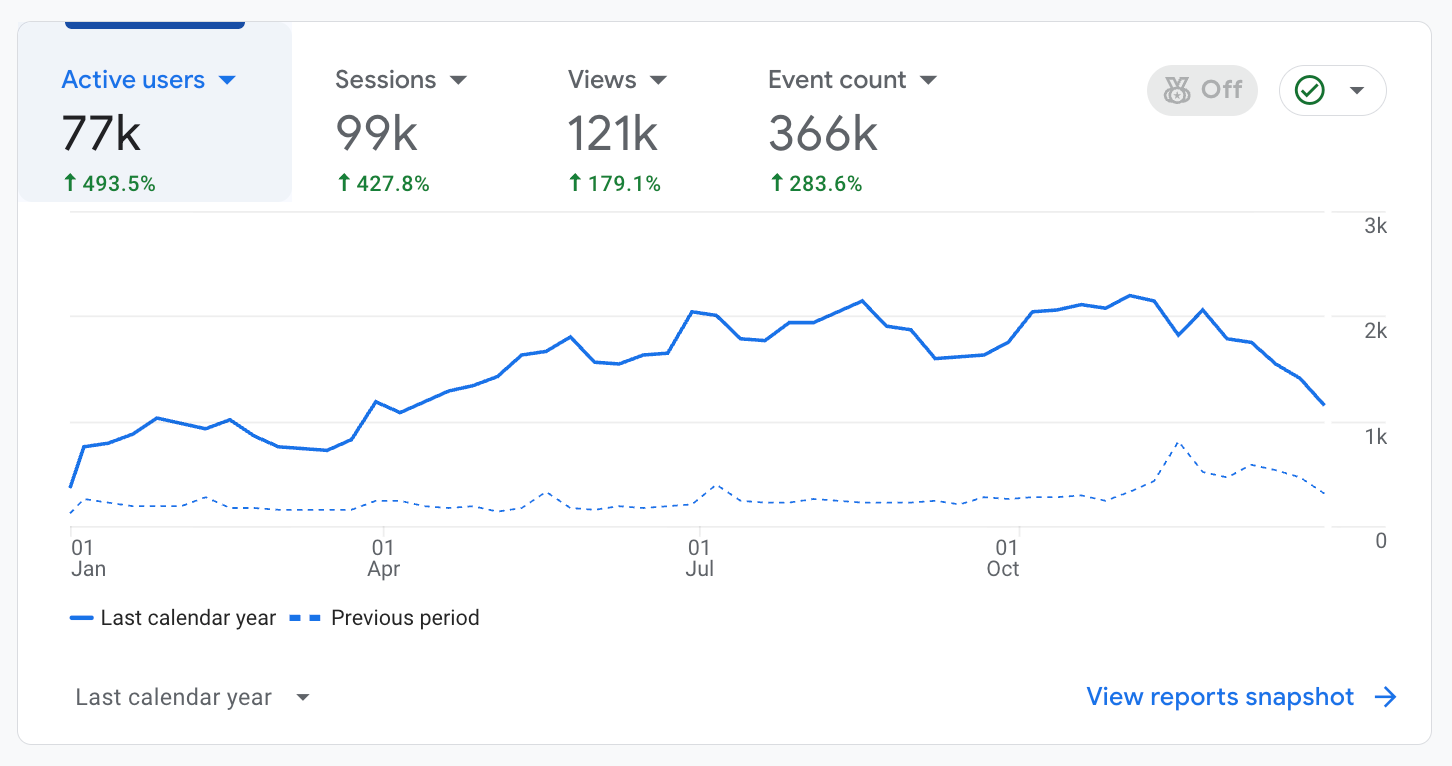 We helped this client generate over 77,000 website visitors in a single year, a 493% growth.